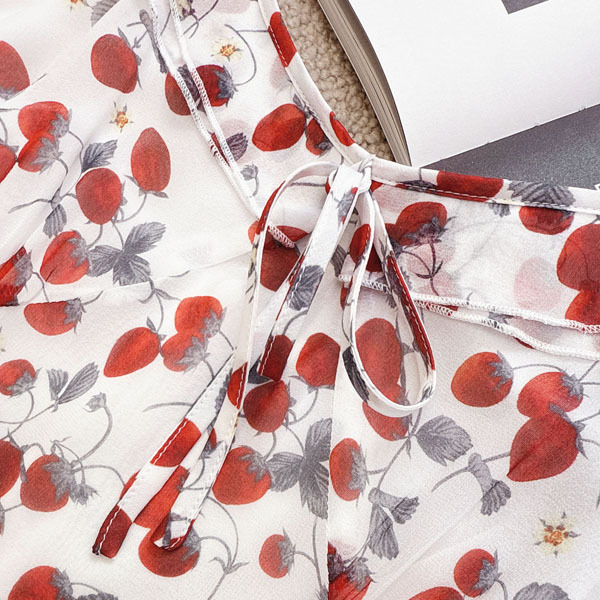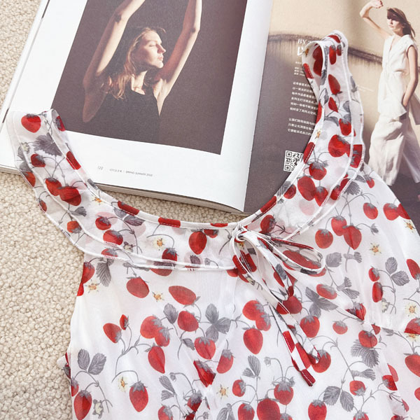 Strawberry retro French silk suspender long dress double-layer mulberry silk dress
